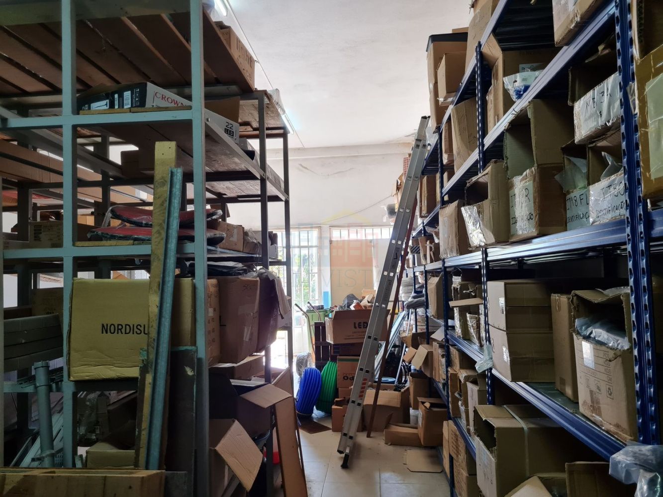 Loja com um pé alto que permite a criação de um segundo piso em mezzanine.