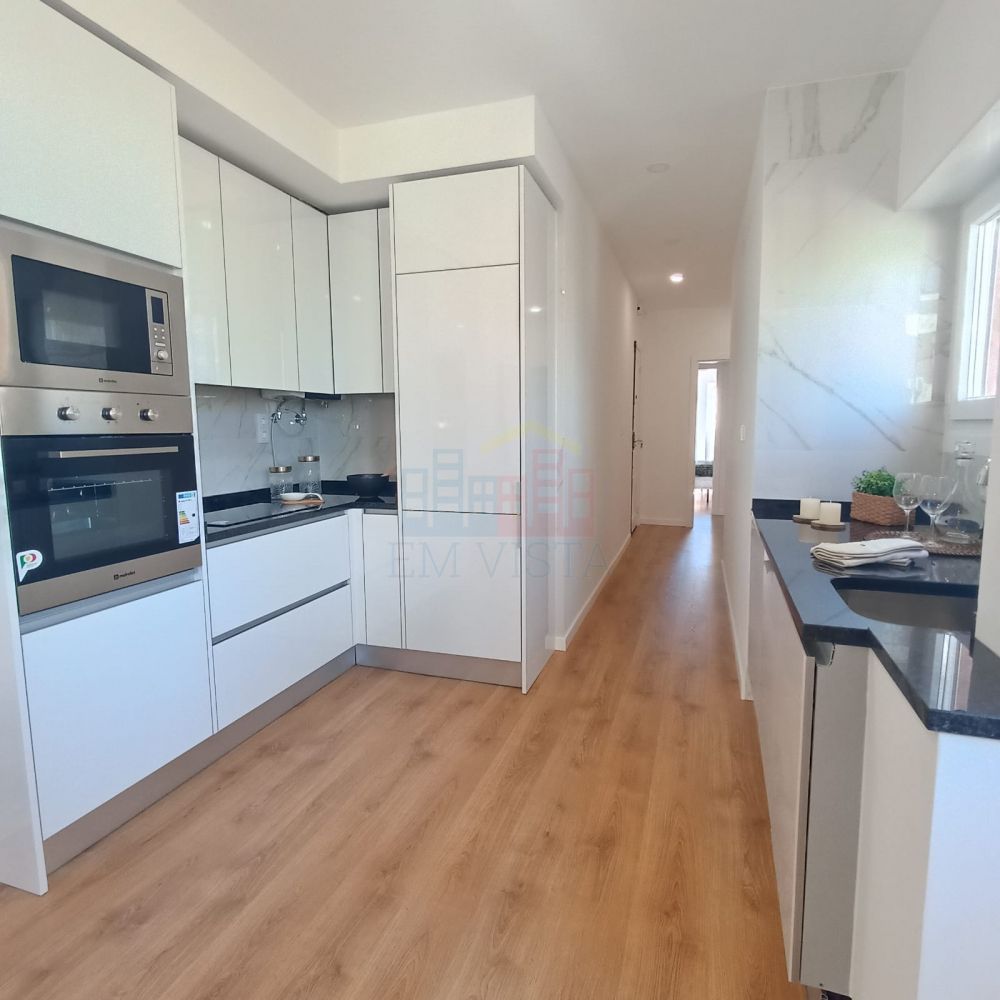 Apresentamos este excelente apartamento que se destaca pela qualidade dos acabamentos, pela luminosidade e pela funcionalidade de todos os espaços. A zona social é composta por uma moderna Cozinha em open space com a Sala, totalizando 30m². A cozinha está totalmente equipada com forno, placa, exaustor, micro-ondas, máquina de lavar loiça encastrada, máquina de lavar roupa encastrada, termoacumulador e combinado encastrado. Conta ainda com móveis em branco e ladrilho em toda a parede de trabalho, oferecendo um ambiente elegante e prático. O Hall de 5m² permite uma circulação fluida para as restantes divisões. O imóvel dispõe de um WC completo com 5m², equipado com loiças suspensas e acabamentos modernos. A zona privada integra três quartos de boas dimensões: Quarto 1: 12m², com roupeiro embutido Quarto 2: 16m², com roupeiro embutido Suíte: 20m², garantindo conforto e privacidade O apartamento beneficia ainda de caixilharia lacada a branco com vidros duplos e oscilo-batentes em todas as assoalhadas, janelas em PVC, estores elétricos, porta blindada, tetos falsos com iluminação LED embutida e pré-instalação de ar condicionado. A orientação de duas frentes confere excelente luminosidade natural ao longo do dia. O prédio não dispõe de elevador, mas após a venda da casa da porteira serão realizadas obras de remodelação no edifício, valorizando o condomínio. Valor do condomínio: €44,20 Precisa de crédito habitação? Ajudamos em todo o processo, desde a avaliação até à escritura, de forma simples, transparente e sem complicações. Este imóvel é ideal para quem procura conforto, modernidade e um espaço pronto a habitar, numa zona em valorização.